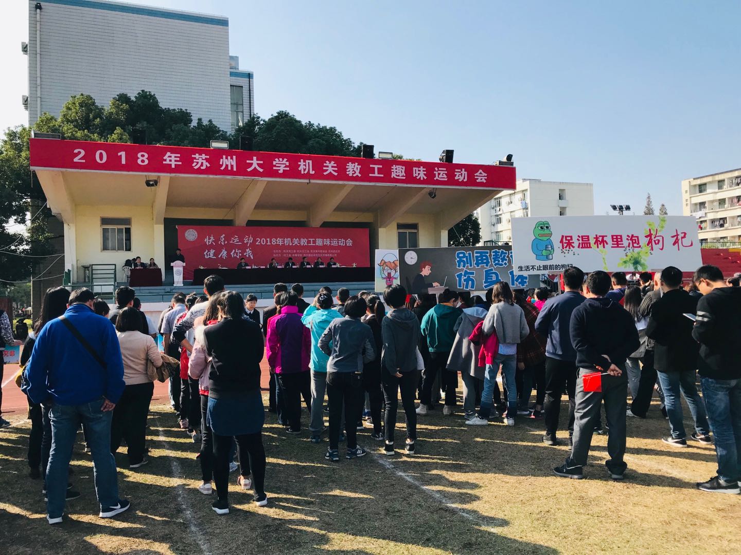 丰富我校机关教工校园文化生活、增强凝聚力和集体荣誉感,提高机关教工的身体素质,促进教工之间的团结、友爱、协作的精神,11月9日,我校2018年“快乐运动,健康你我”机关教工趣味运动会在天赐庄东校区田径场举行。