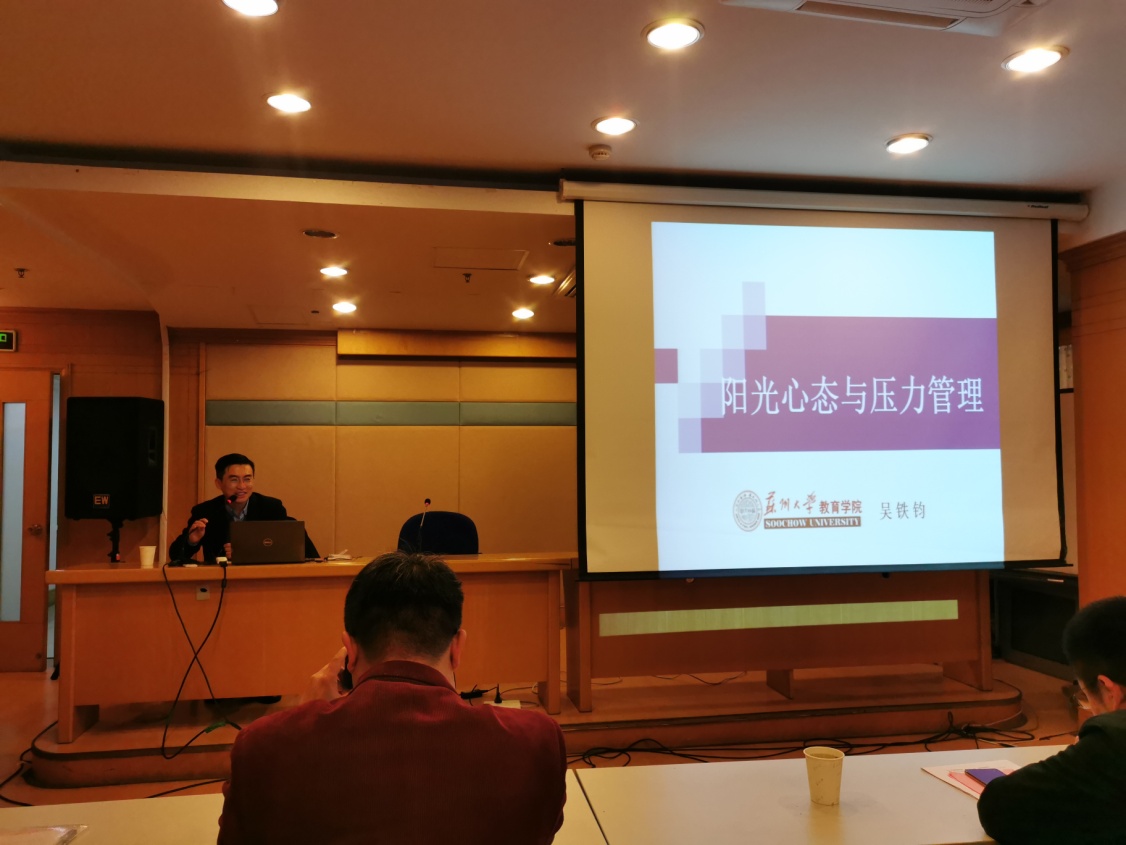 大会还特邀苏州大学教育学院副院长吴铁钧副教授为大家作《阳光心态与压力管理》专题讲座,解读压力的定义,分析压力形成的原因,并教会广大机关职工应对压力的方法。讲座语言诙谐、深入浅出、浅显易懂,令大家受益匪浅。