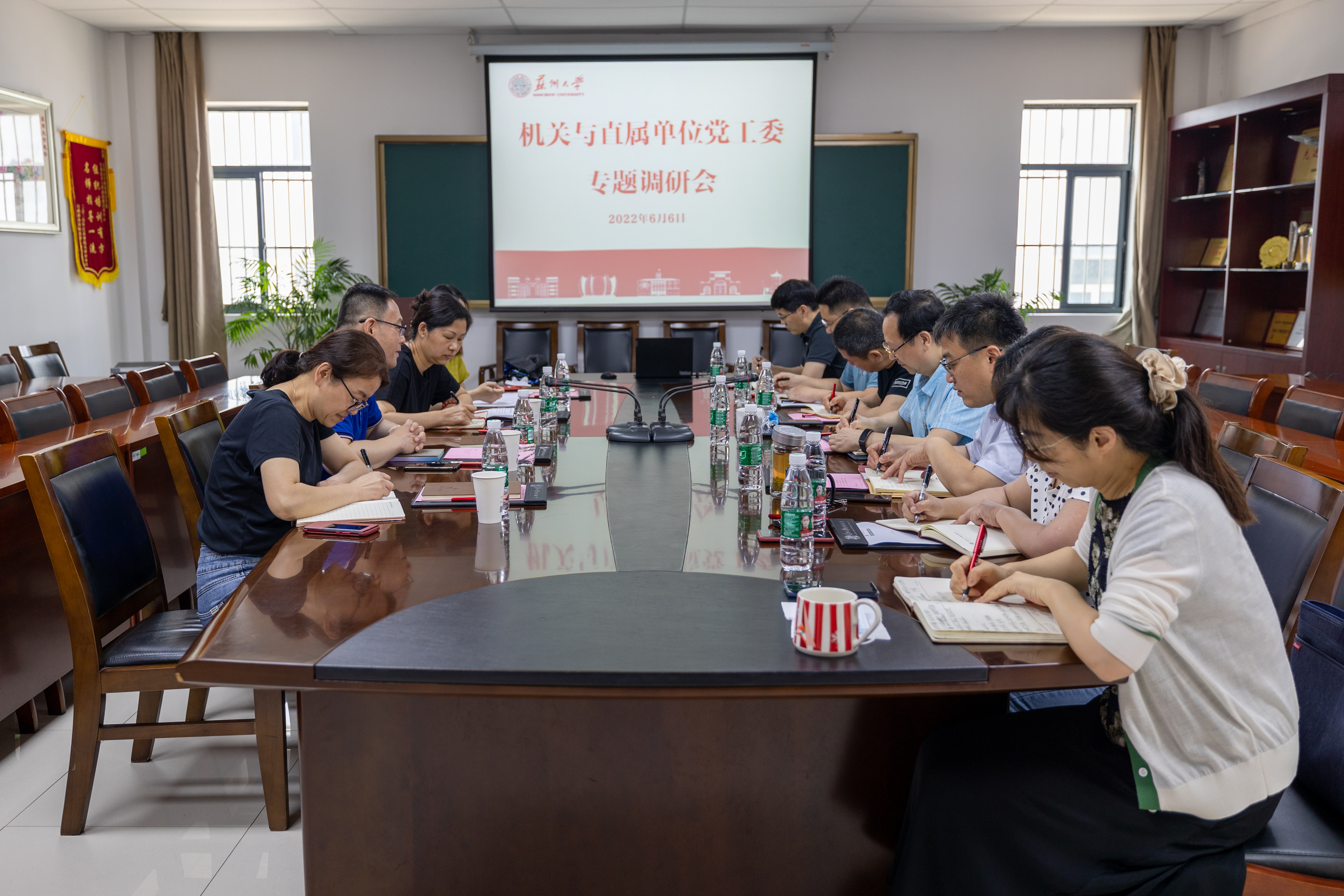 6月6月,机关与直属单位党工委书记唐文跃带队到继续教育学院开展专题调研,围绕支部建设总体情况、落实“强基创优”建设思考及计划、以及作风效能建设情况听取意见建议。继续教育学院领导班子、党支部委员等出席了交流会。