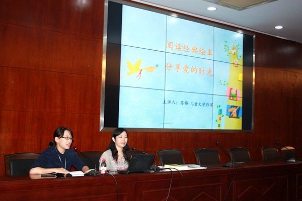 10月22日下午,经机关青年联谊会邀请,中国作家协会会员、著名儿童文学作家、苏州大学党委统战部的苏梅老师在校本部东吴大讲堂,为我校机关青年教师家长奉上了一场精彩的亲子阅读讲座《阅读经典绘本,分享爱的时光》,讲座由机关青年联谊会副会长沈慎涵主持。
