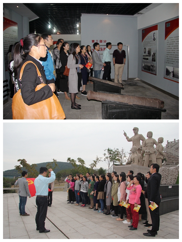 下午,党员们赴“苏州新四军太湖游击队纪念馆”参观学习,接受革命教育,凝聚精神力量。全体党员参观了纪念馆内陈列的新四军战士用过的各种物品、抗战时期的芦苇荡、通信船以及联络站,了解了新四军太湖抗日游击支队初建的历史背景、重建过程、扩建规模,重温了革命先烈风雨铁血、浴血奋战、保家卫国的丰功伟绩,接受了一次深刻的思想和精神洗礼。在纪念馆前,党员们面对党旗,重温入党誓词,进行庄严宣誓,铭记一名党员的使命和责任。