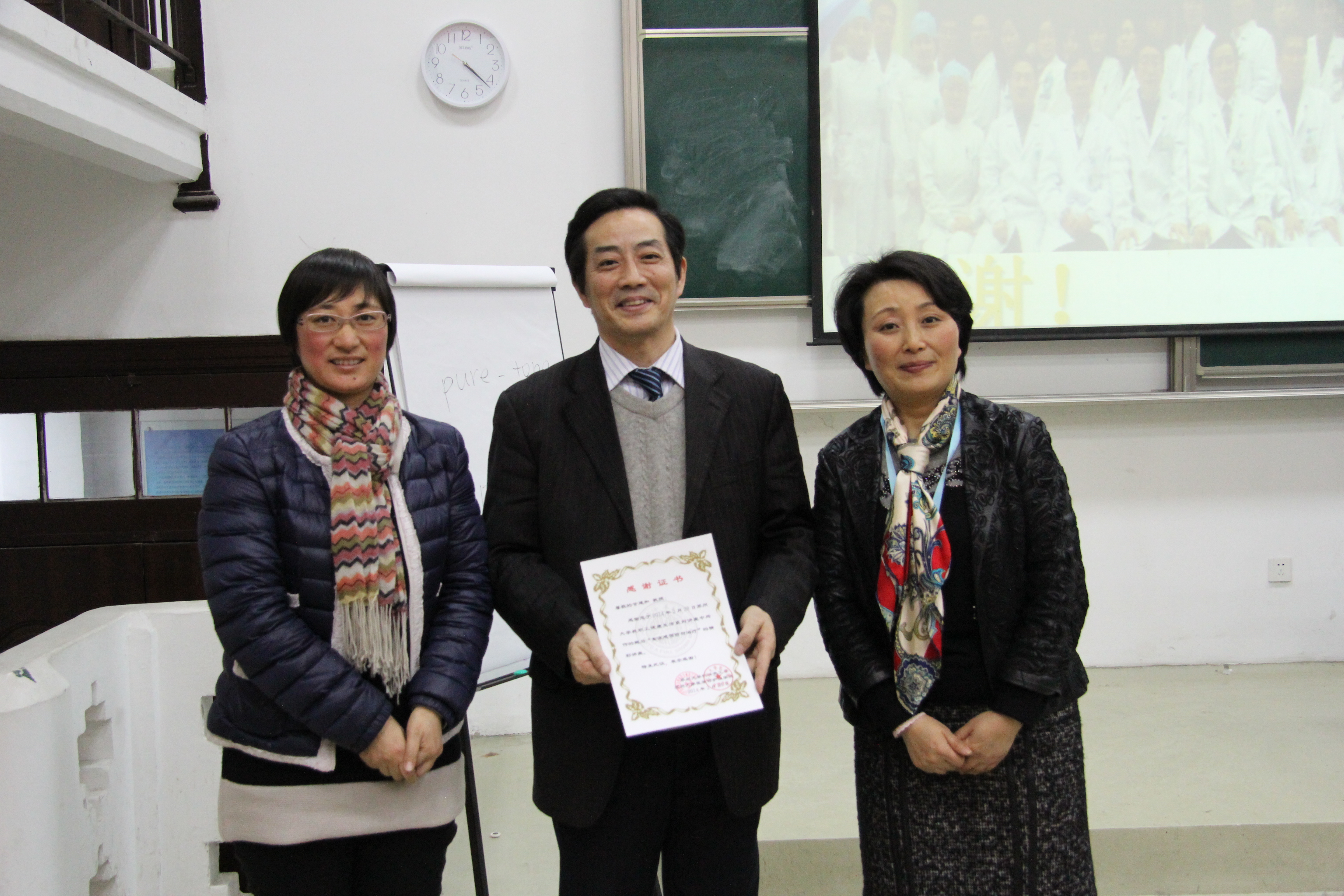 医学部护理学院李惠玲院长、机关党工委唐宇宏副书记给甘建和教授颁发感谢证书