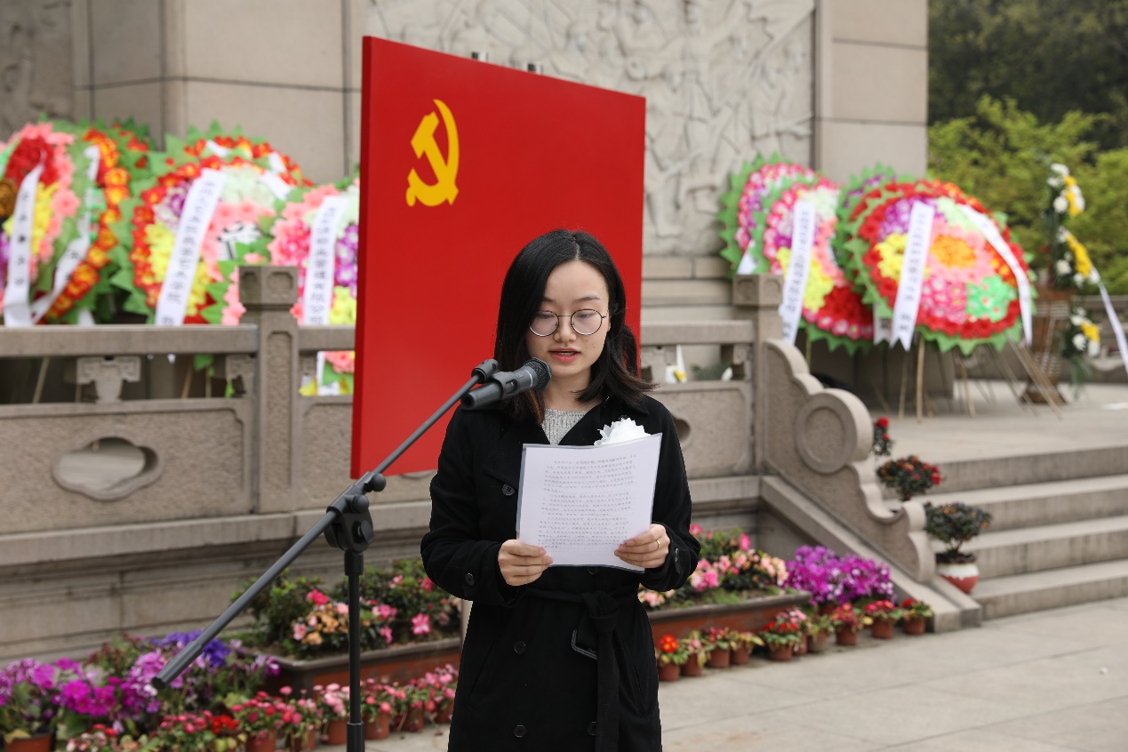 抵达苏州市横山烈士陵园,党员同志们首先佩戴好亲手制作的小白花,而后整齐有序、庄严肃穆的走向纪念碑。合唱完《中华人民共和国国歌》后,芮雪同志代表全体党员宣读祭文。“今天是我们一部分老党员的政治生日,革命烈士们的精神提醒激励着我们不忘初心、牢记使命,在工作和生活中切实发挥模范先锋作用。我们要坚定理想信念,爱岗敬业,立德树人,做党和人民满意的好老师!”