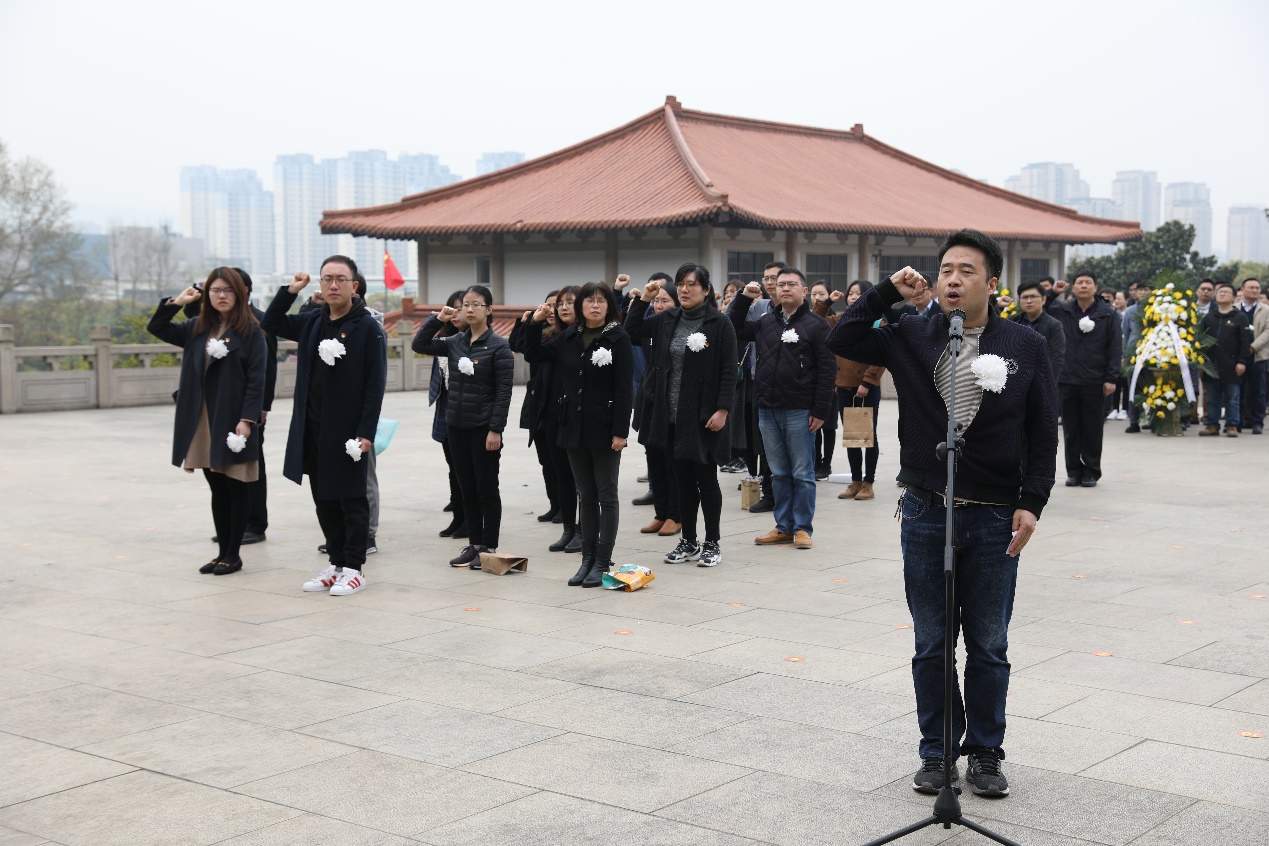 随后,全体党员三鞠躬向烈士们致敬。何雯同志和王弩同志代表全体党员敬献花圈。紧接着,党员代表王瑞成同志带领全体党员重温入党誓词。“我志愿加入中国共产党……”熟悉的誓词再一次在庄严的党旗下喊出,每位政治生日的党员心中更多了些对党忠诚的坚定力量。全体党员围绕纪念碑瞻仰一圈后,为诸位烈士一一敬献亲手制作的白花,以表哀思与怀念。