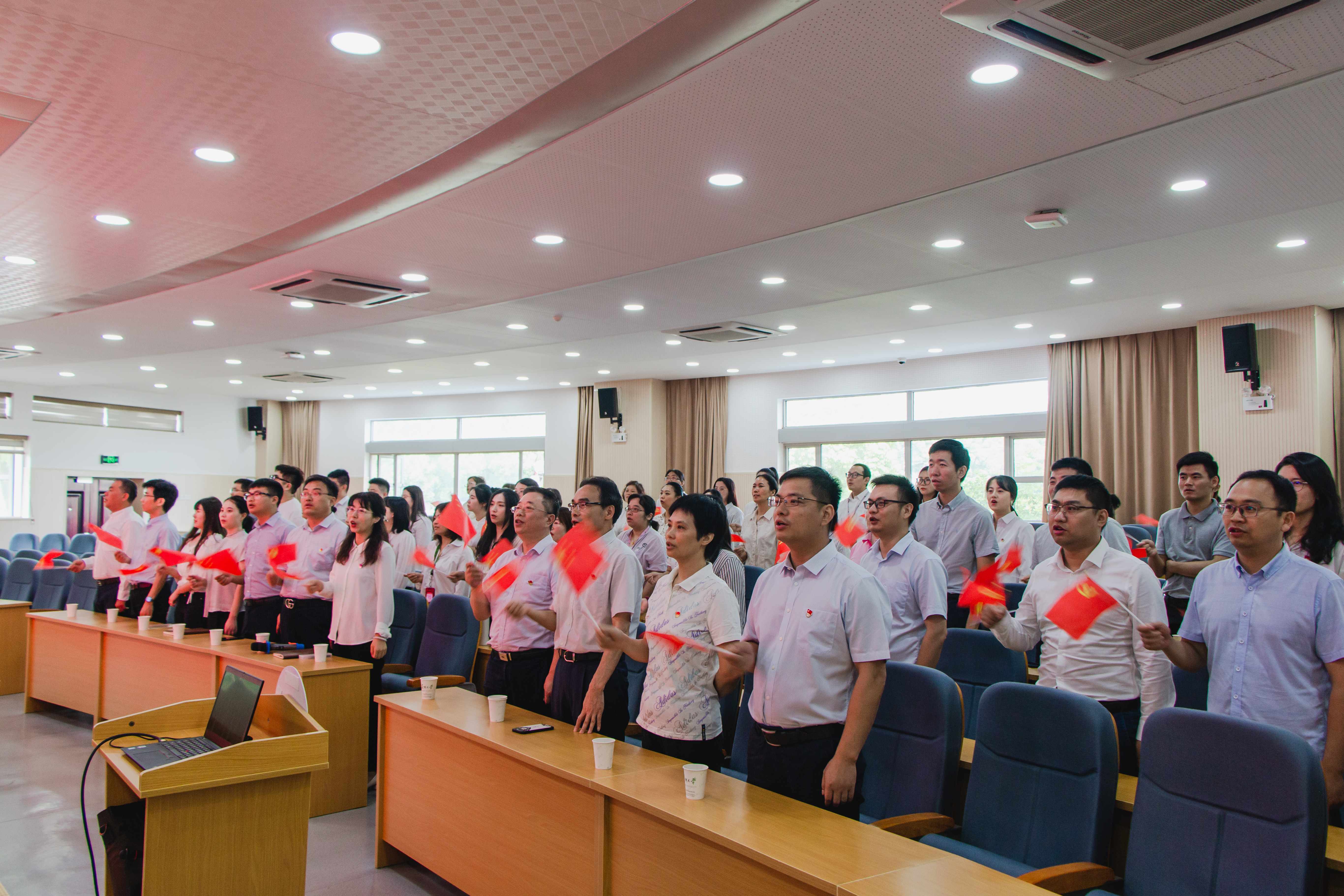 每一个震撼人心的场景、每一个朝气蓬勃的笑容、每一句激荡人心的话语都紧紧牵动着现场观众的心,大家全神贯注、边听边记,跟着直播同唱国歌、《国际歌》......直播结束后,大家怀着久久不能平静的心情挥舞党旗,齐声同唱《没有共产党就没有新中国》,用歌声表达感党恩、跟党走的坚定决心,倾诉对党、对祖国的无限祝福。